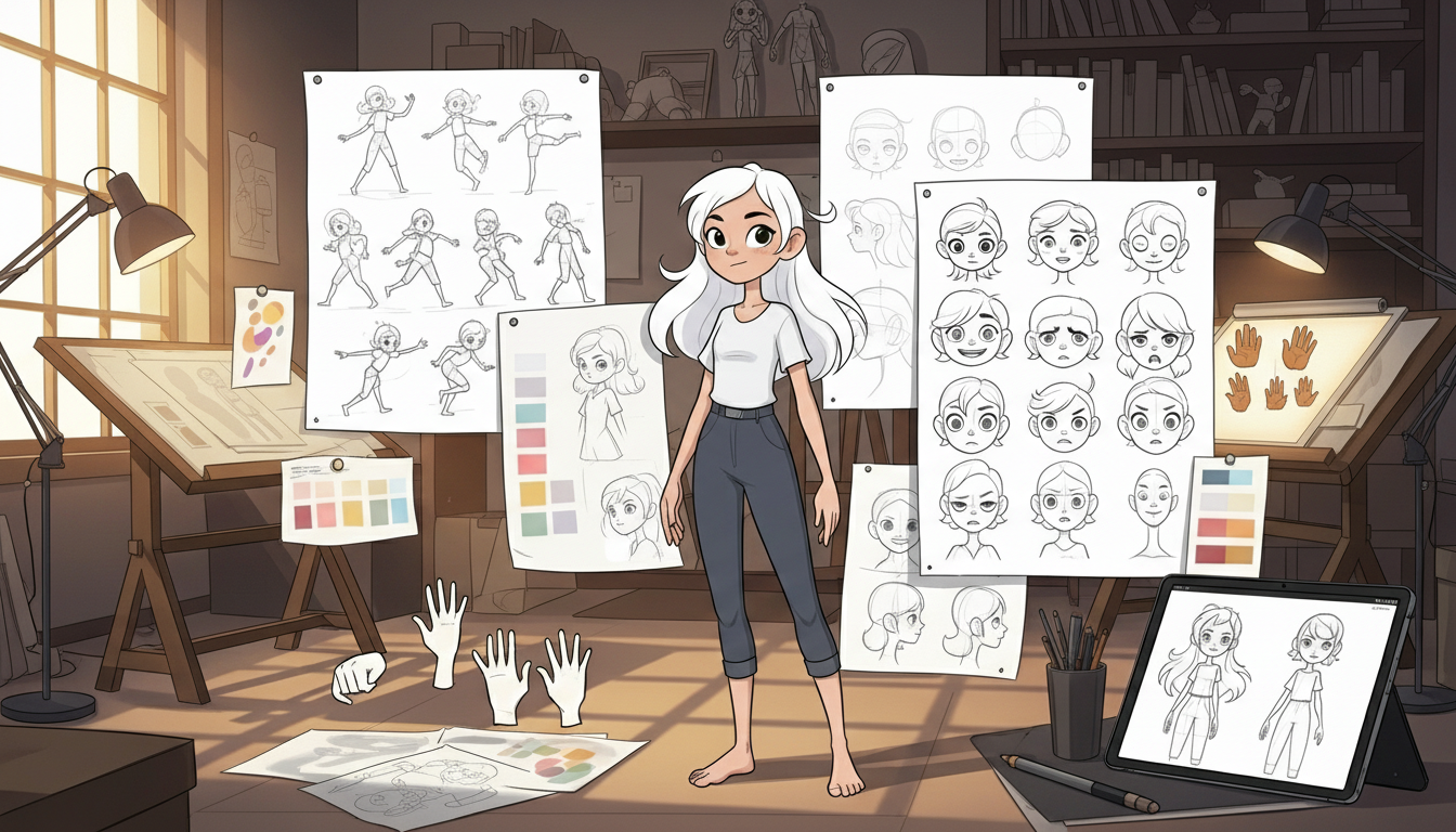 Il character design comincia spesso con schizzi, che diventano sempre più dettagliati, con lo scopo di trasmettere la personalità e le emozioni e ne catturano lo stile che caratterizza ogni produzione visiva. Vengono creati per ogni personaggio i Model Sheet, gli studi delle espressioni e la palette colori. Avere un insieme di asset validi è importante per velocizzare la produzione di tutte le scene del prodotto animato; in genere questa è l'unica fase che non andrebbe ripetuta per ogni singola scena.