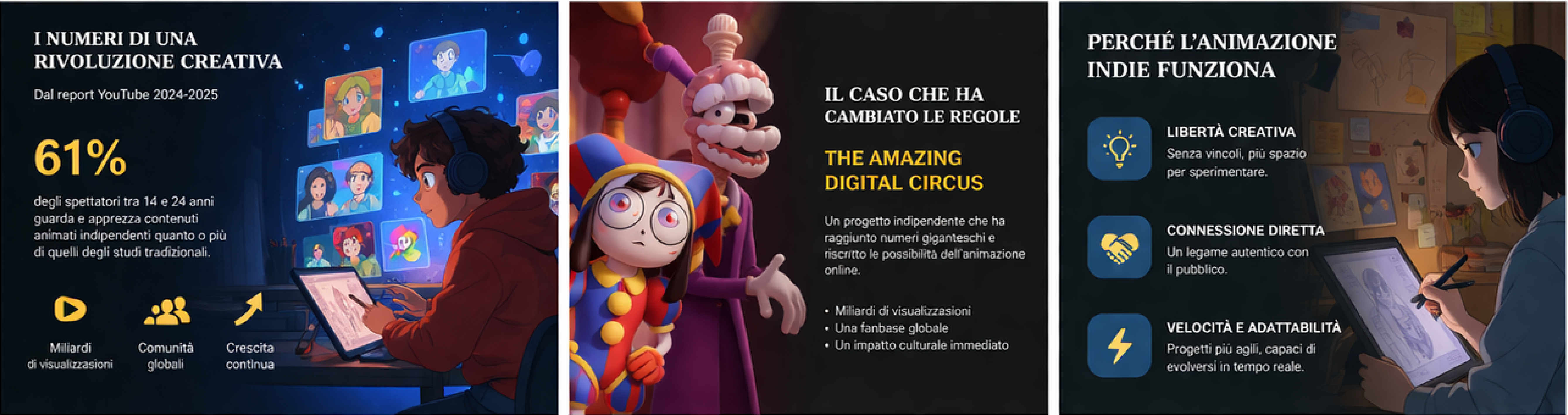 Il dato più significativo è che il 61% degli spettatori tra i 14 e i 24 anni guarda e apprezza contenuti animati indipendenti quanto — se non di più — di quelli prodotti dagli studi.
